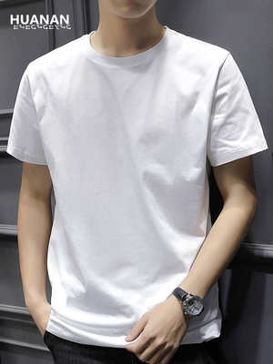 40支精梳纯棉圆领纯色纯白色打底衫短袖t恤男士修身半袖内搭夏季