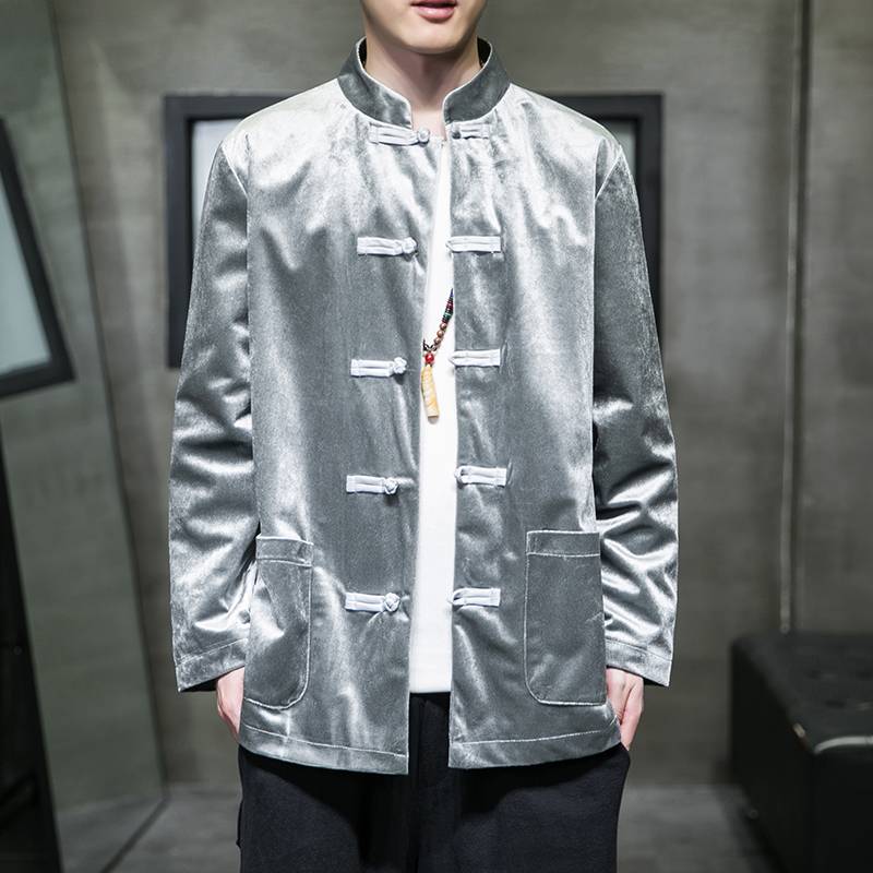 2023秋冬中国风男装丽丝绒复古唐装气质汉服夹克外套