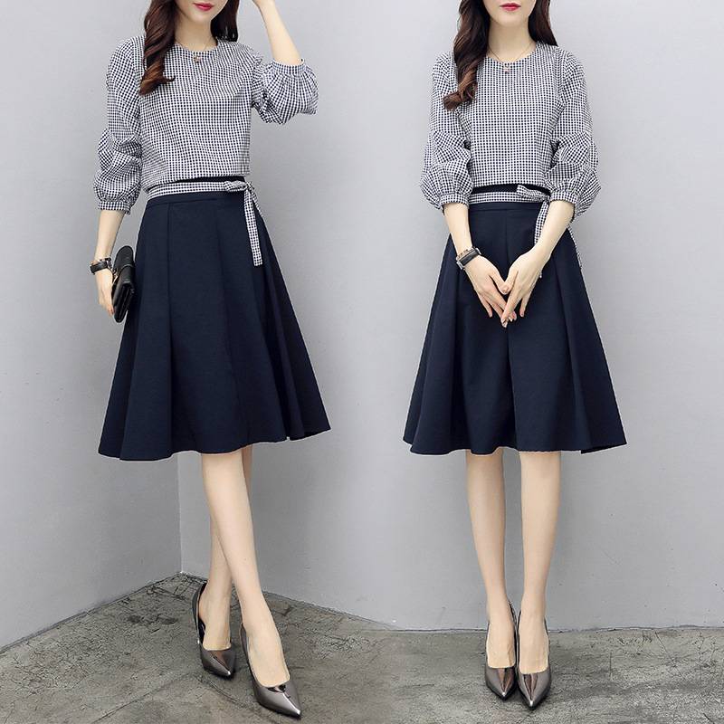 早秋套装女2018新款时尚气质淑女小香风修身收腰名媛假两件套女秋
