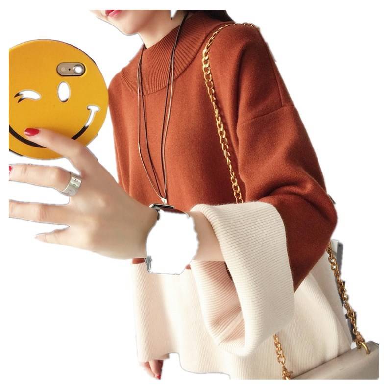 半高领女装2018新款学院风外套喇叭袖毛衣女韩版套头宽松针织上衣