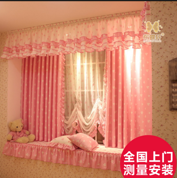 定制 【安装】布蝶轩韩式田园粉色飘窗窗帘公主儿童短帘半帘 心动定制