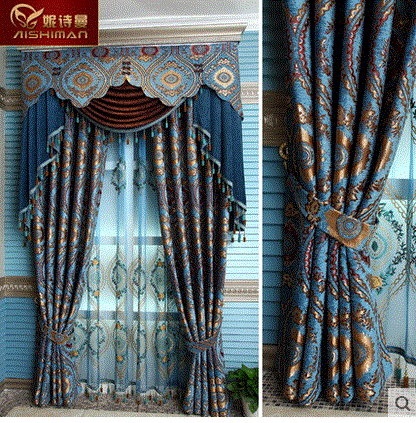 妮诗曼高档欧式别墅会所窗帘成品定制卧室客厅书房蓝色豪华特价