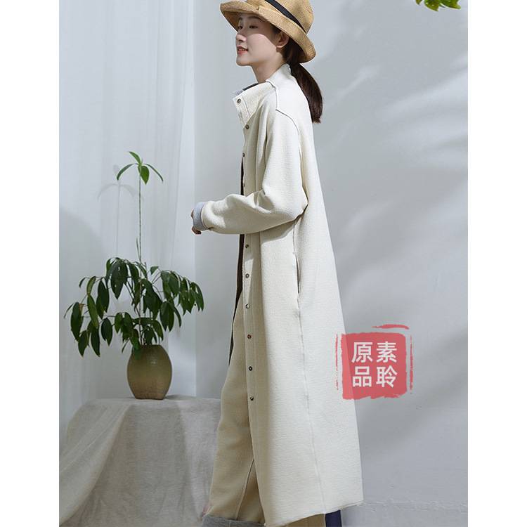 双层空气层针织茧型长款外套女春秋文艺气质连领宽松风衣S1352