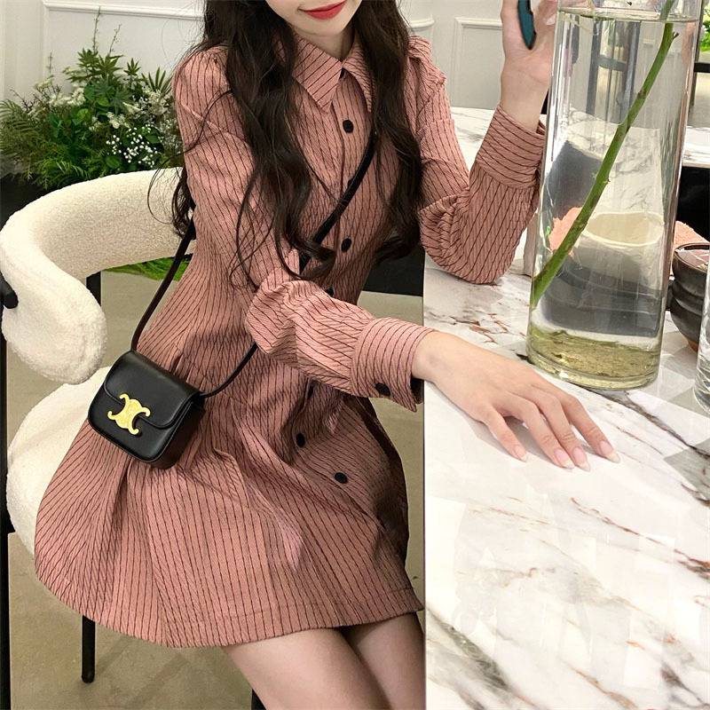 甜岛学院风2023春季新款连衣裙百搭小众设计感长袖女衬衫裙小个子