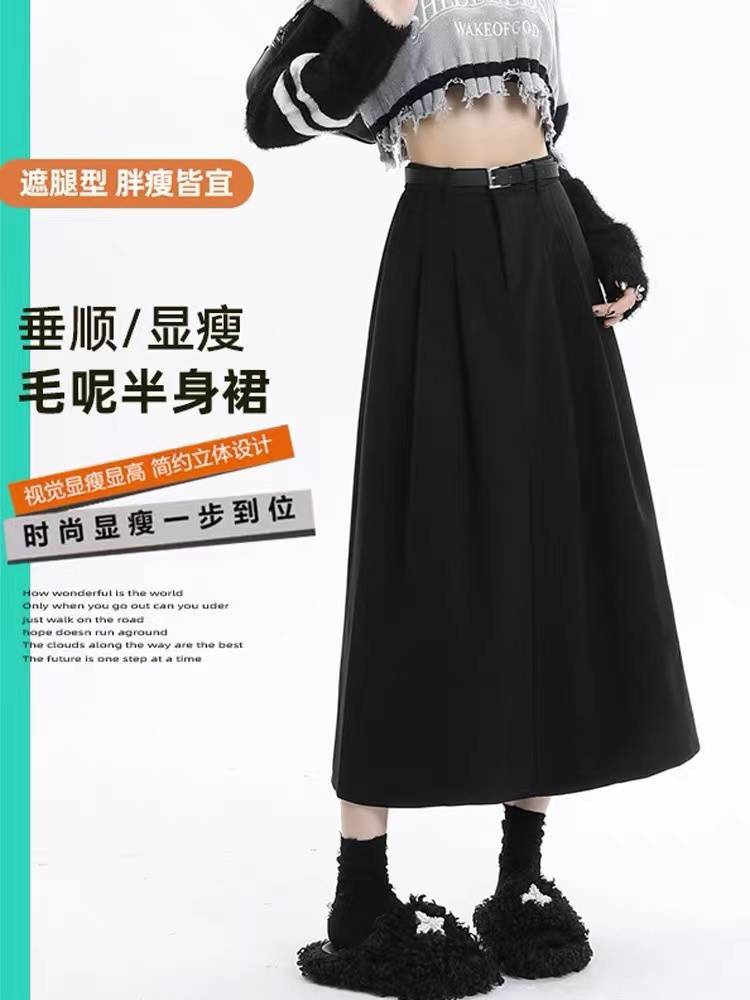 毛呢西装百褶半生裙女秋冬小个子高腰吹干中长款a字伞裙长裙
