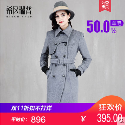 44折清 希区瑞普赫本风欧美修身羊毛呢大衣秋冬新品修身收腰外套