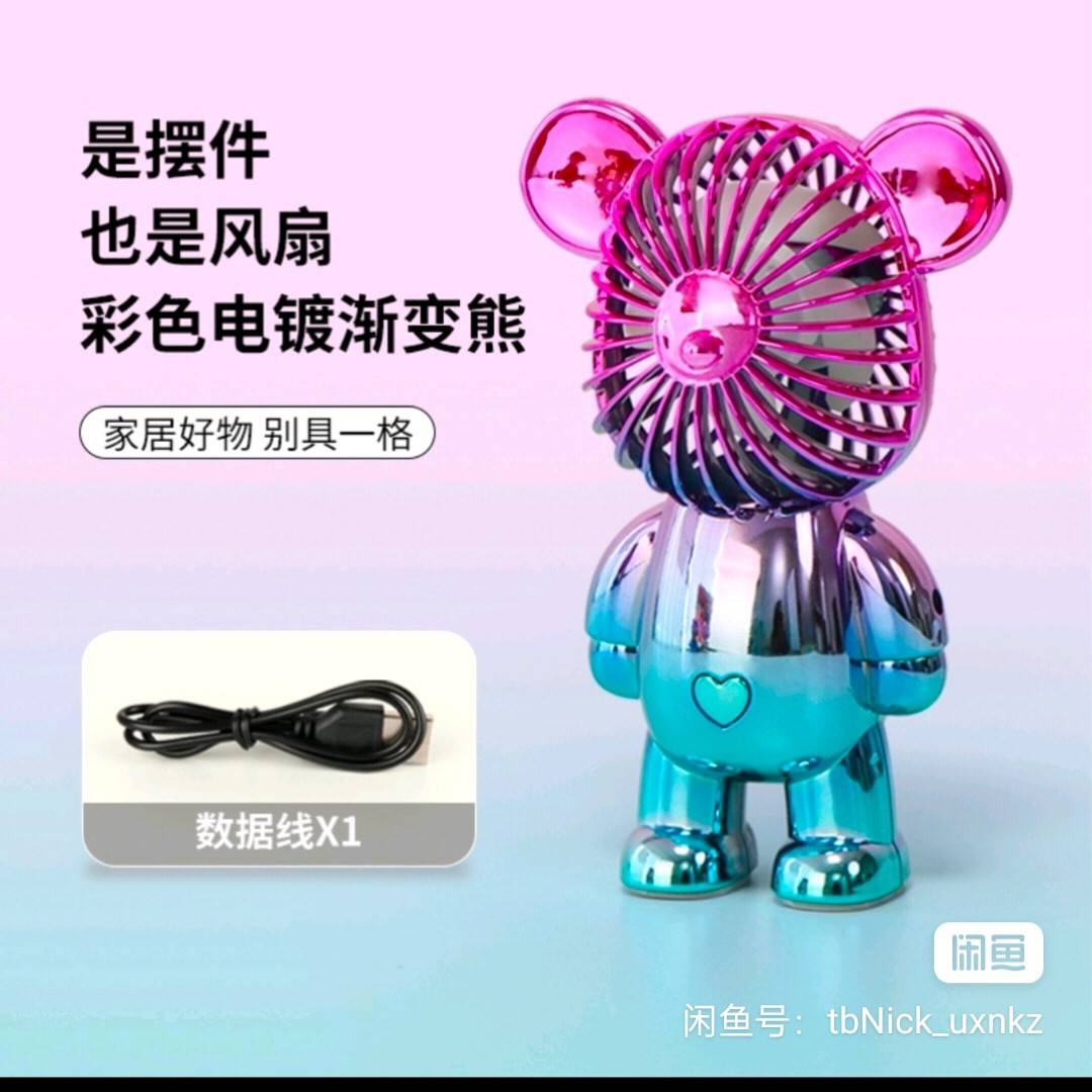 渐变小熊手持风扇小型便携式随身usb可充电学生宿舍静音桌面办公