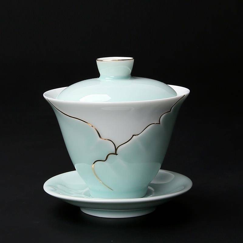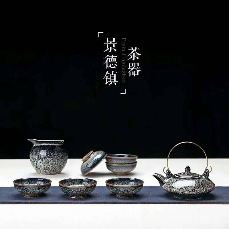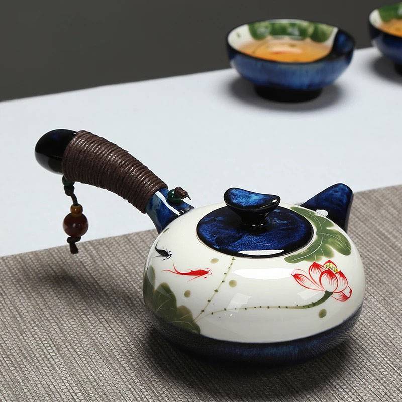 茶具套装家用 整套功夫茶具陶瓷 手绘藏蓝日式茶杯侧把茶壶