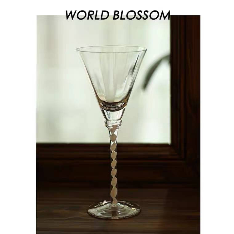 中古高脚玻璃杯白色透明螺旋复古红酒杯鸡尾酒杯香槟杯