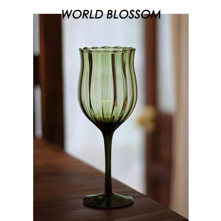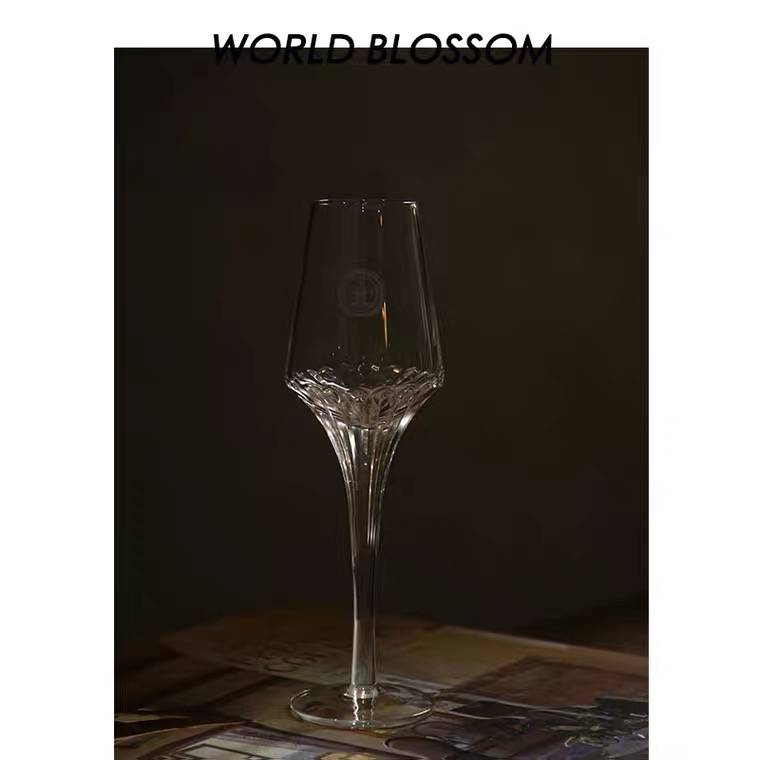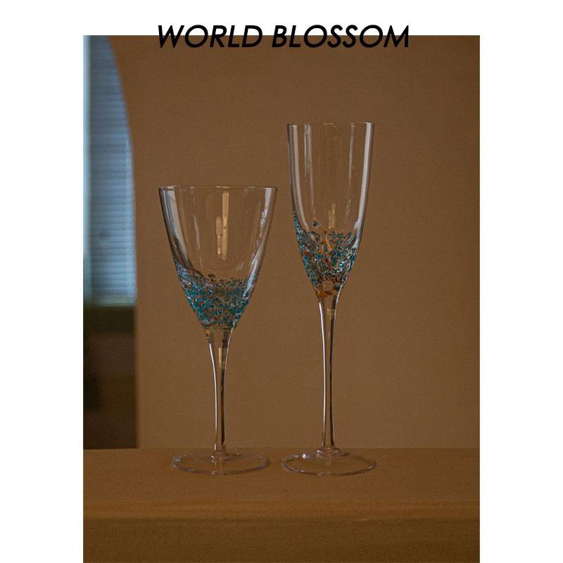 人间开花红酒高脚玻璃杯小众透明花朵洋酒杯套装家用中古香槟杯