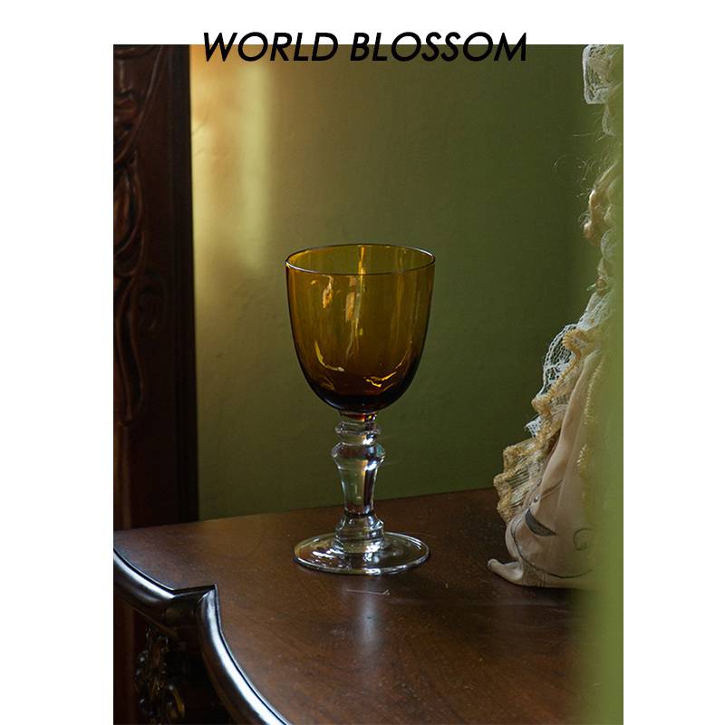 人间开花琥珀中古高脚杯玻璃杯鸡尾酒杯复古家用果汁杯出口