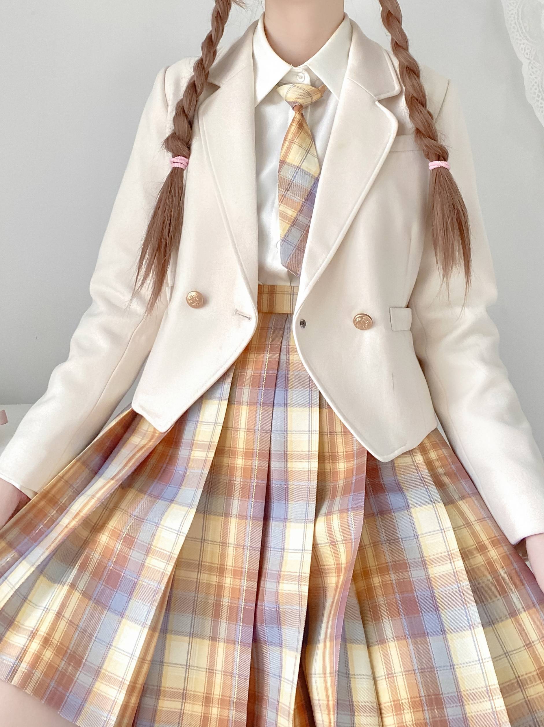 【森铃奇迹JK】落日航班jk制服裙正版夏季格裙金线黄格裙少女日系