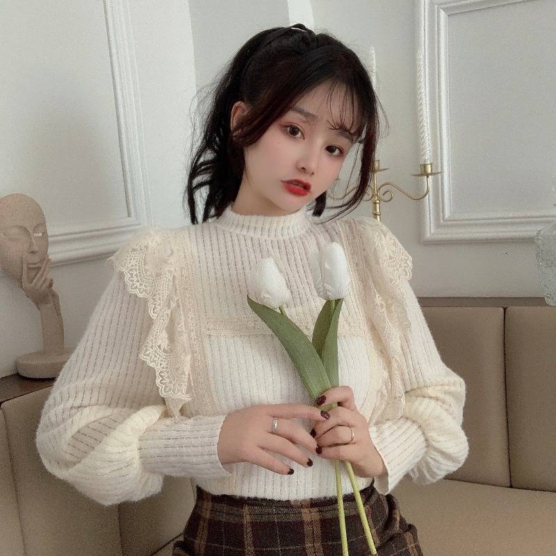 蕾丝打底衫女装早秋新款大码百搭高端洋气内搭小衫胖mm遮肚子上衣
