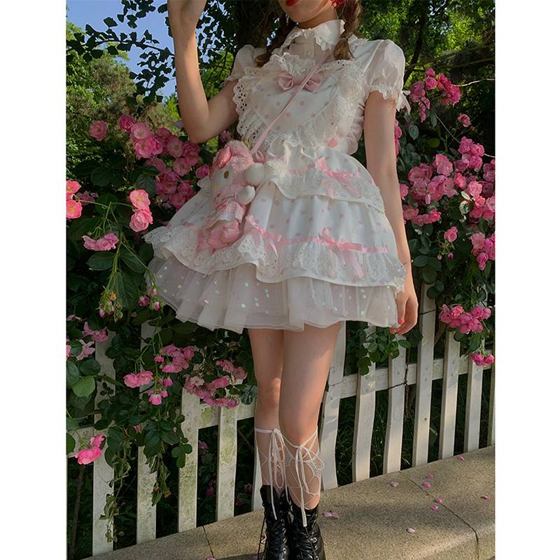 森女系sankousan原创 果味珍珠 可爱甜美洛丽塔爱心波点背带裙