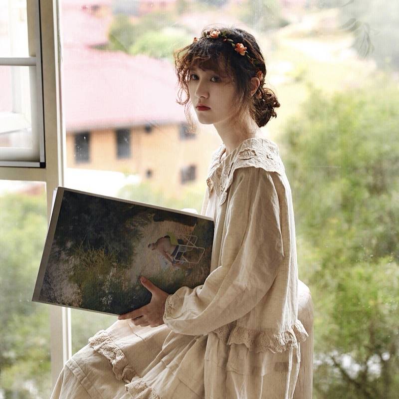 日系女装娃娃裙荷叶边森系少女甜美可爱连衣裙文艺复古森女风春