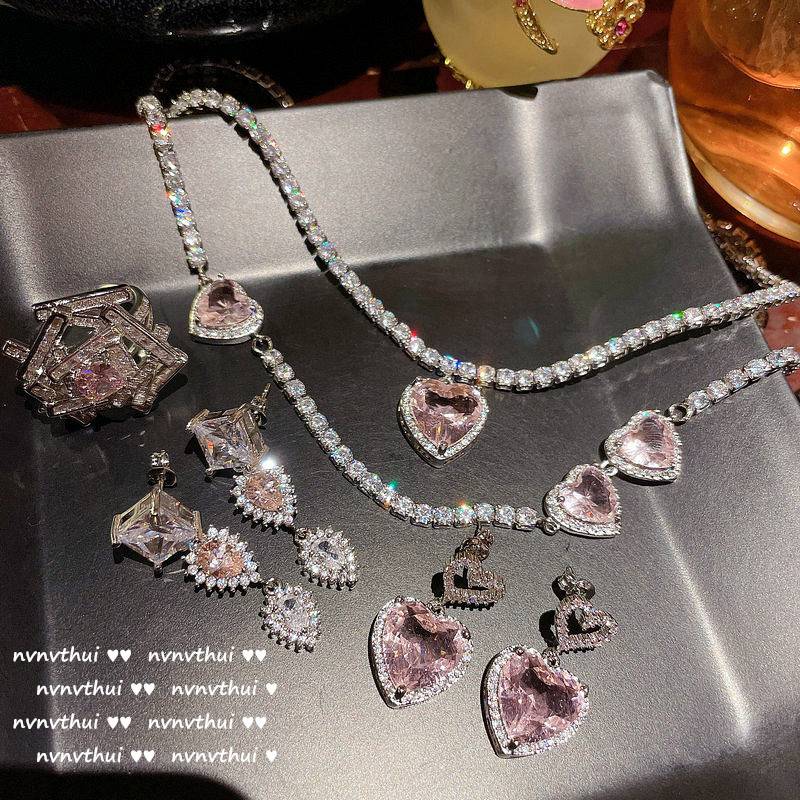 璀璨粉爱心宝石项链 设计师镀18K金葡萄紫