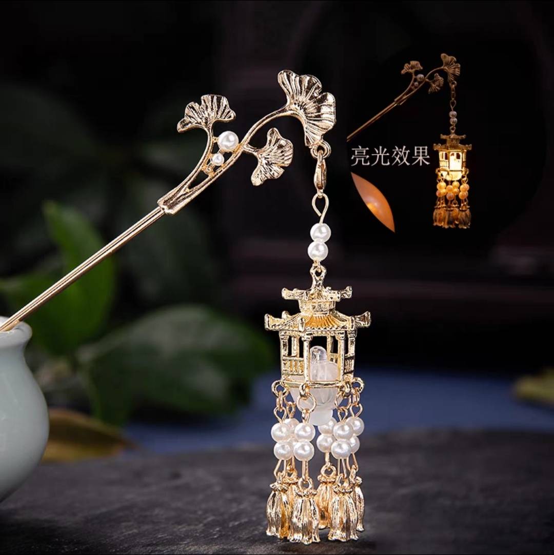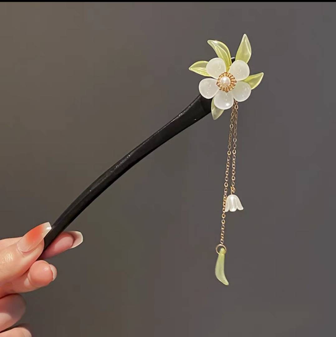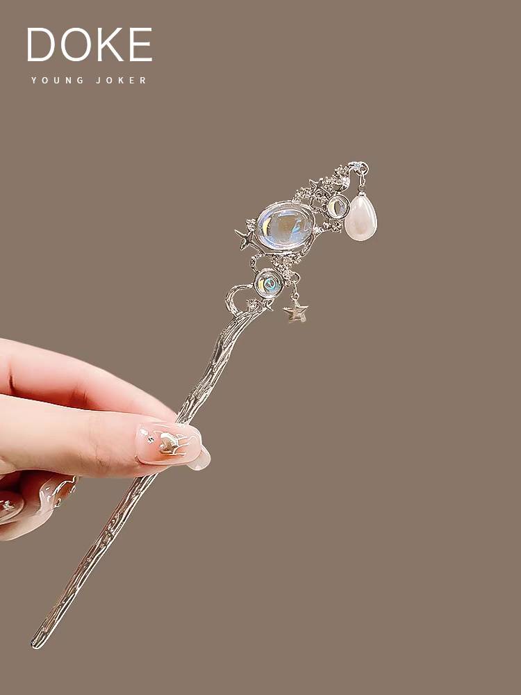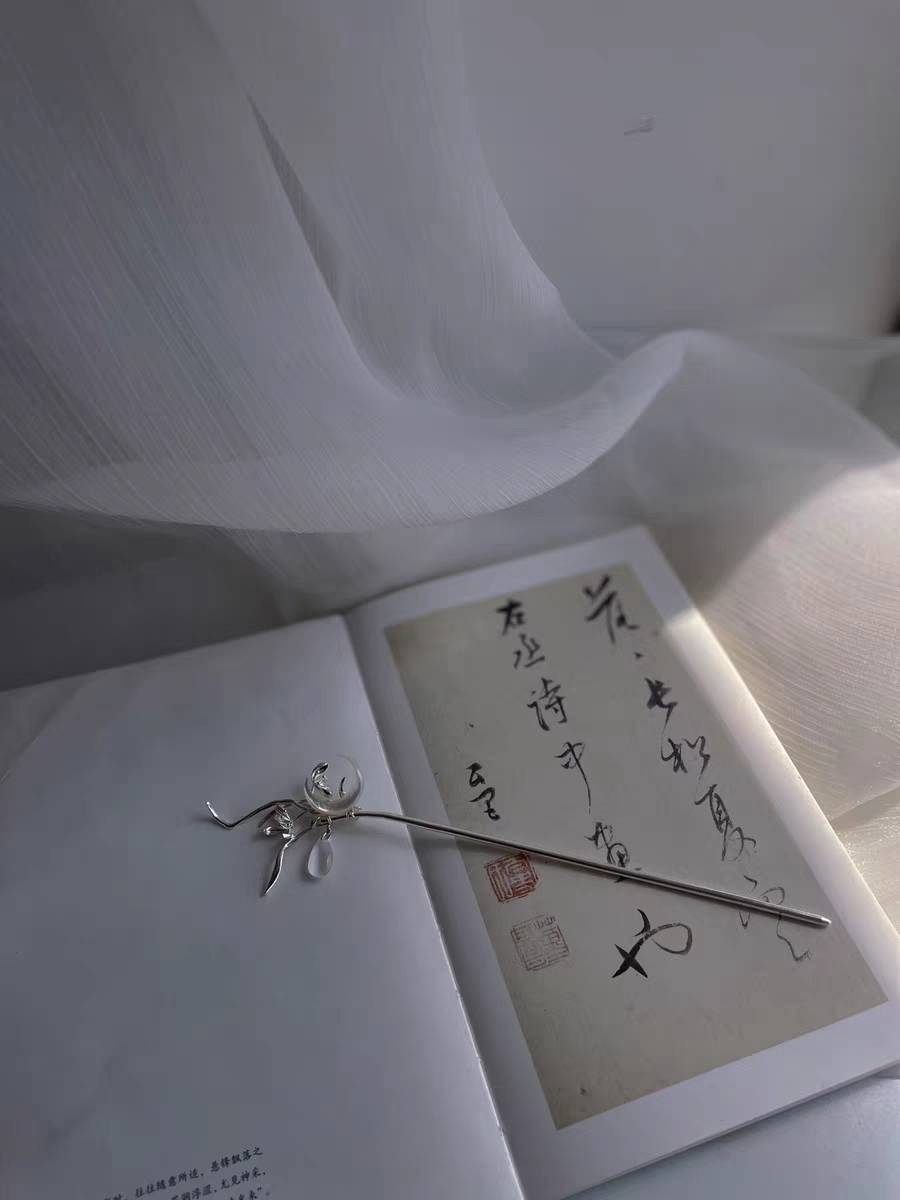 (月无尽)骨兰月亮兰花发簪月亮发簪汉服配饰古风配饰