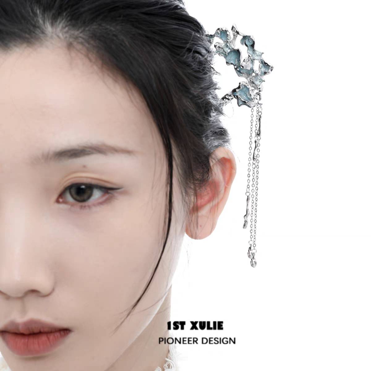 冰封海域/原创设计可拆卸发簪水治愈冰蓝色女孩链条发饰