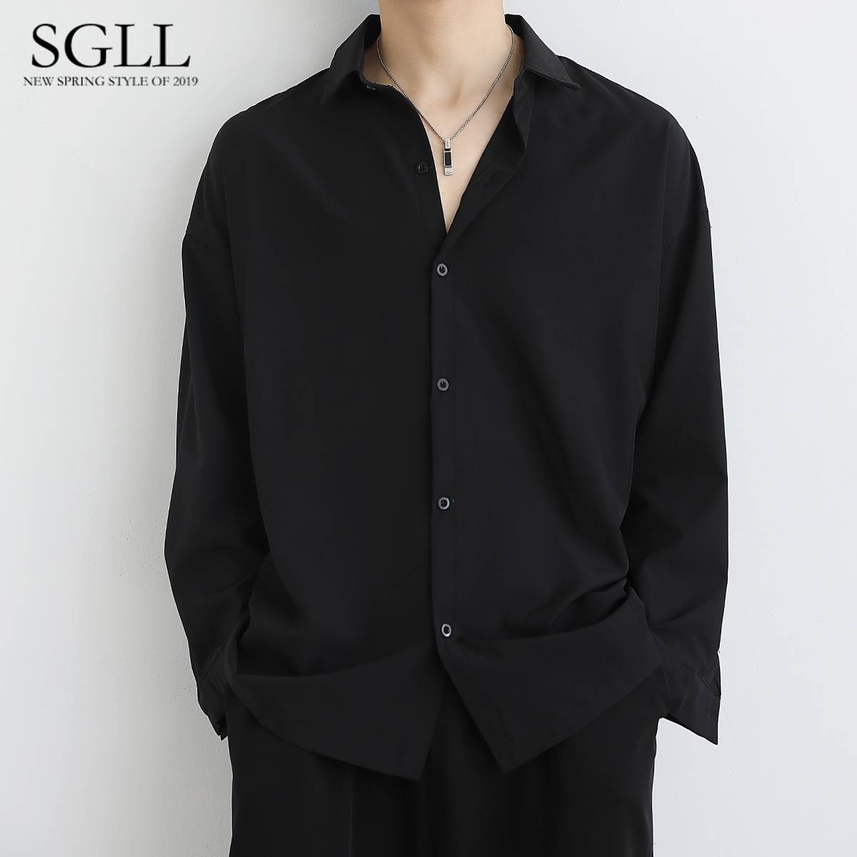 2020耐看复古绿衬衫简约配领带撞色休闲衬衣男士春夏宽松寸衣百搭