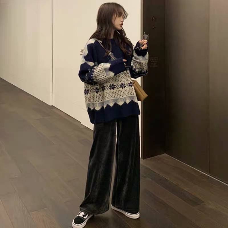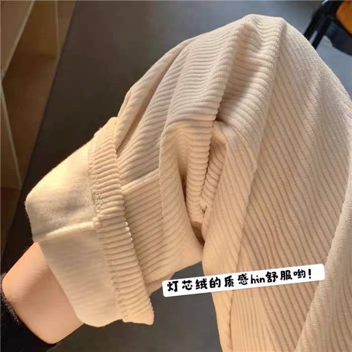 短t少女加厚灯芯绒裤子女冬新款奶白色高腰休闲直筒阔腿裤