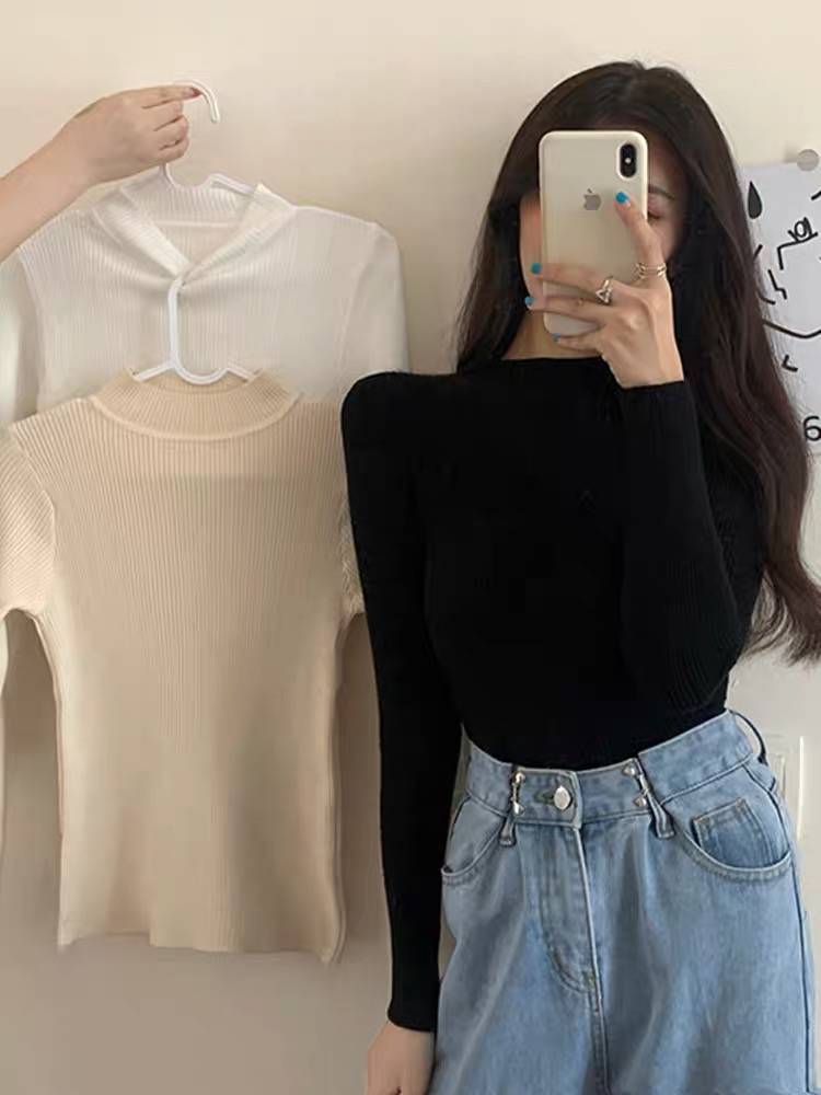 短t少女半高领新款针织打底衫秋冬百搭洋气黑色内搭长袖内穿女士