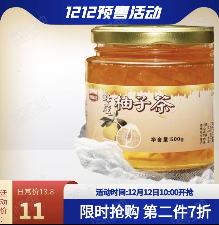 瓶装蜂蜜柚子茶 500g 晶莹剔透原生态 冲泡饮水合饮 健康饮食