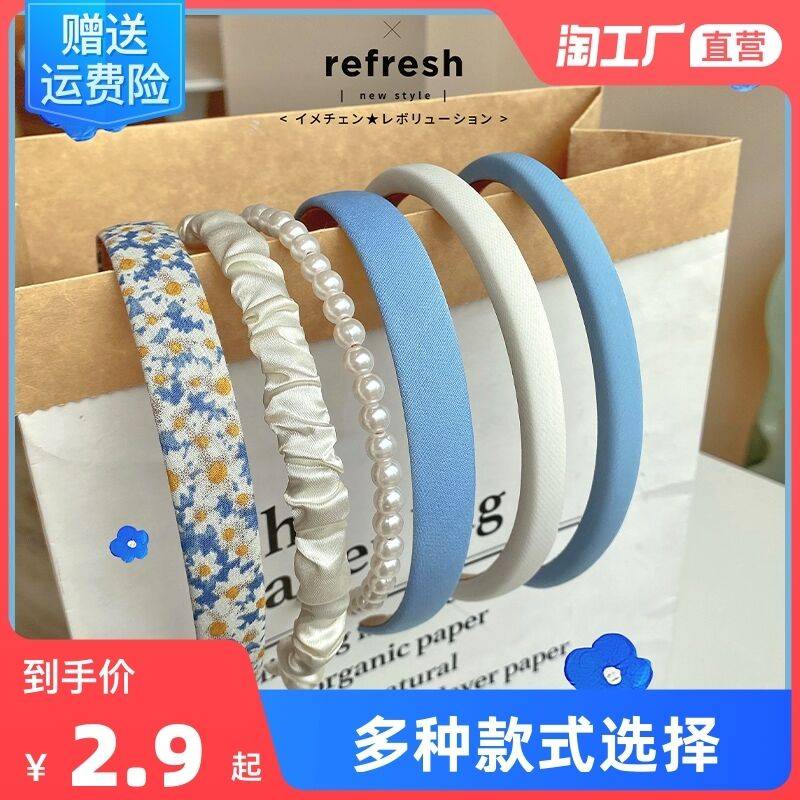 发箍夏天法式百搭外出复古碎花布衣发卡网红珍珠压发少女头箍