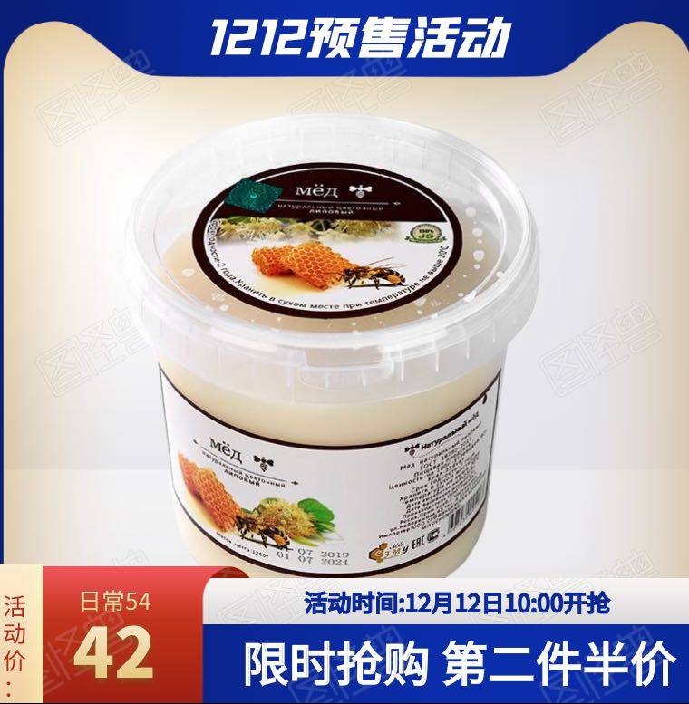 高结晶蜂蜜 纯俄罗斯进口蜂蜜 椴树花蜂蜜1250g优质蜂蜜