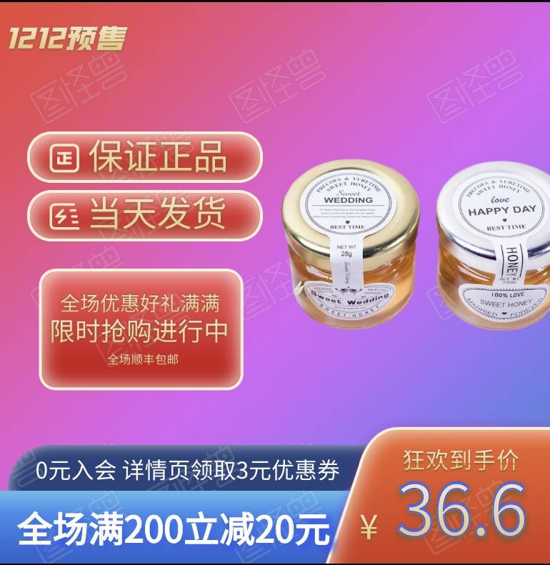 定制版28g百花蜂蜜 小巧伴手礼品 礼宴婚宴喜宴馈赠小礼蜂蜜小瓶装