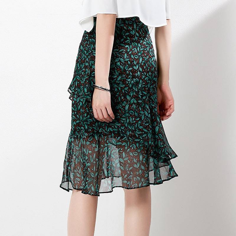 2020夏季新款名媛女装欧美荷叶边飘逸高腰包臀裙印花雪纺半身裙女
