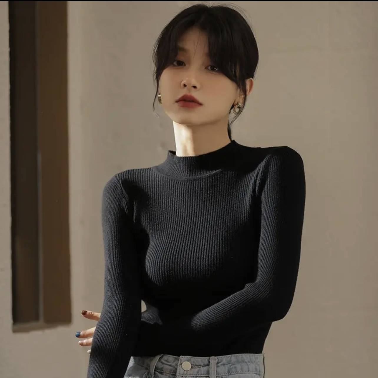 韩版黑色半高领毛衣女2023秋冬新款打底衫内搭修身针织衫上衣外穿