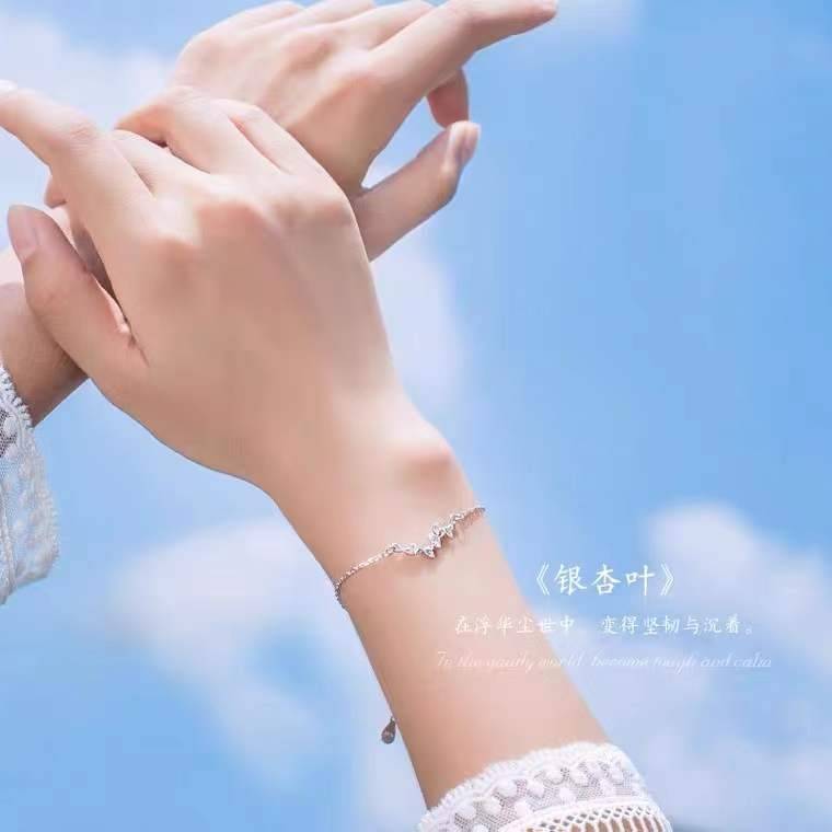 纯银银杏手链ins设计感轻奢刻字姐妹手链