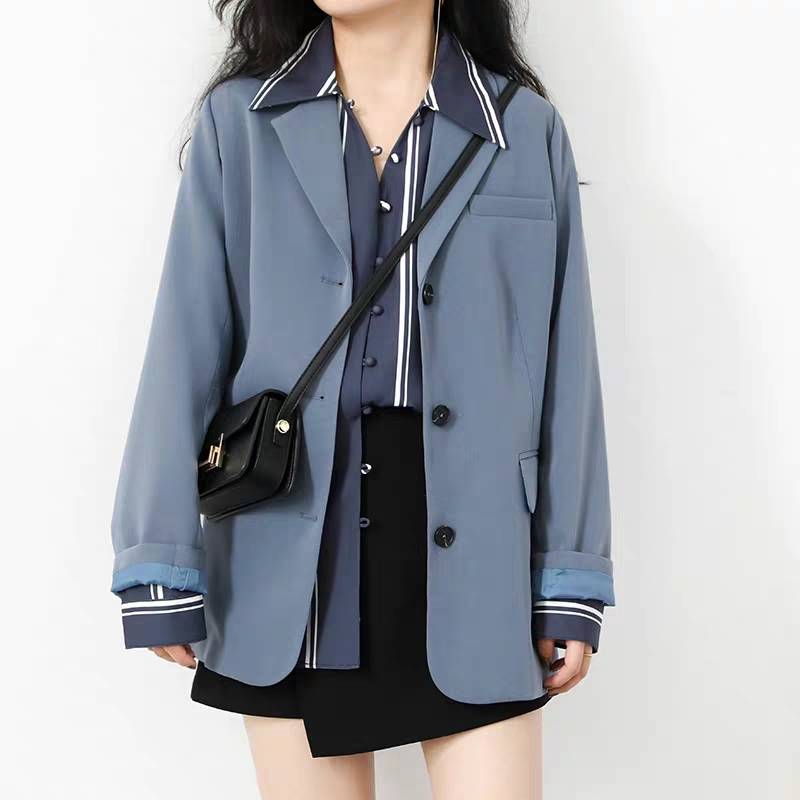 自制2019春夏新款冷淡风宽松休闲西服西装外套女韩版百搭