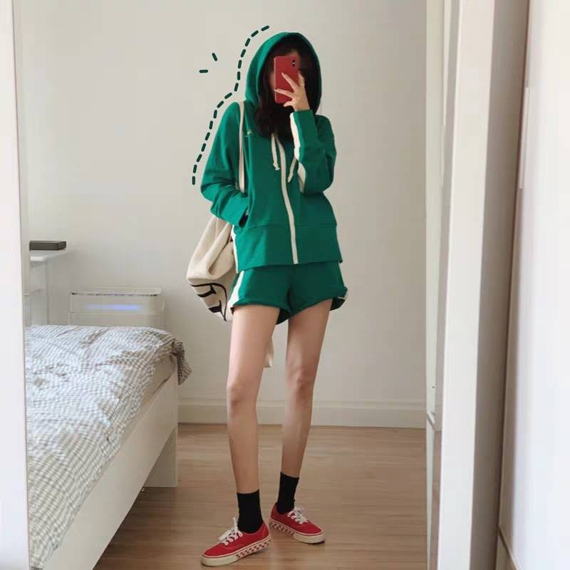 自制春秋新款韩版显瘦系带运动服高腰宽松阔腿裤休闲两件套