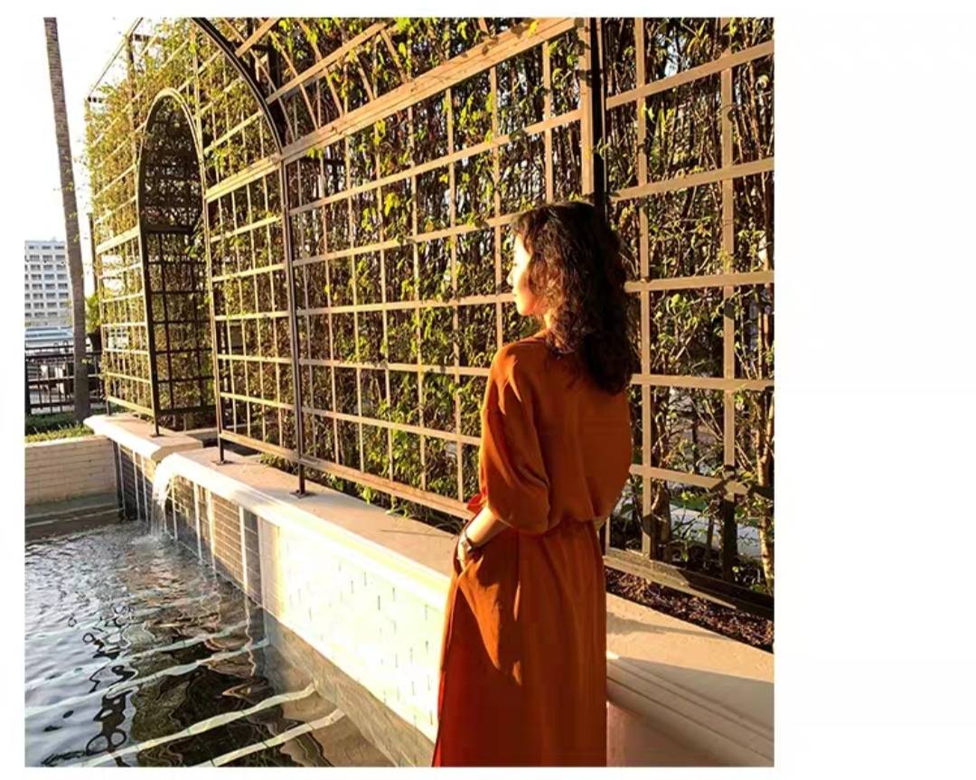 小众珊瑚橘贝壳扣衬衫连衣裙韩版百搭chic