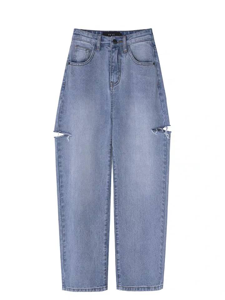 春夏高腰泫雅阔腿破洞牛仔裤女宽松显瘦直筒裤