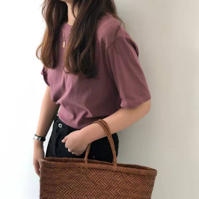 两色圆领基础款短袖T宽松休闲上衣2019春夏新款韩版百搭