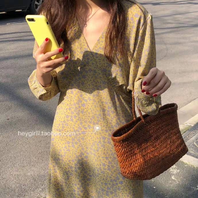 碎花V领显瘦收腰连衣裙女韩版长裙2019春夏新款