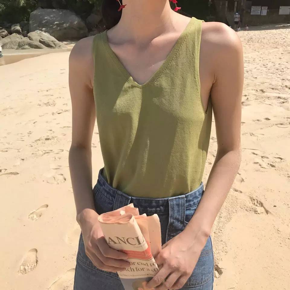 2019新款v领针织背心女夏外穿打底港味复古吊带无袖女