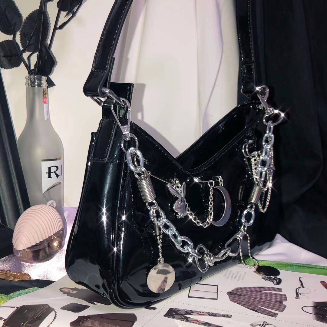 y2k千禧辣妹不规则亮面漆皮欧美潮酷街头暗黑单肩包