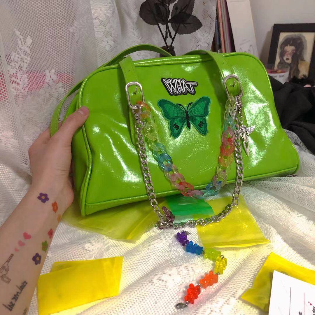原创vintage牛油果绿辣妹y2k千禧复古单肩小众旅行袋