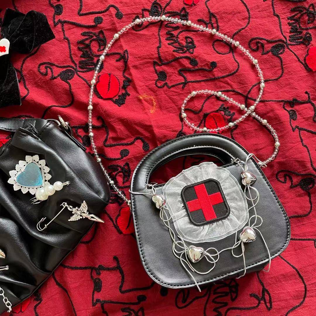 哥特mini暗黑红十字架蕾丝爱心甜酷Y2K千禧辣妹斜挎小方包