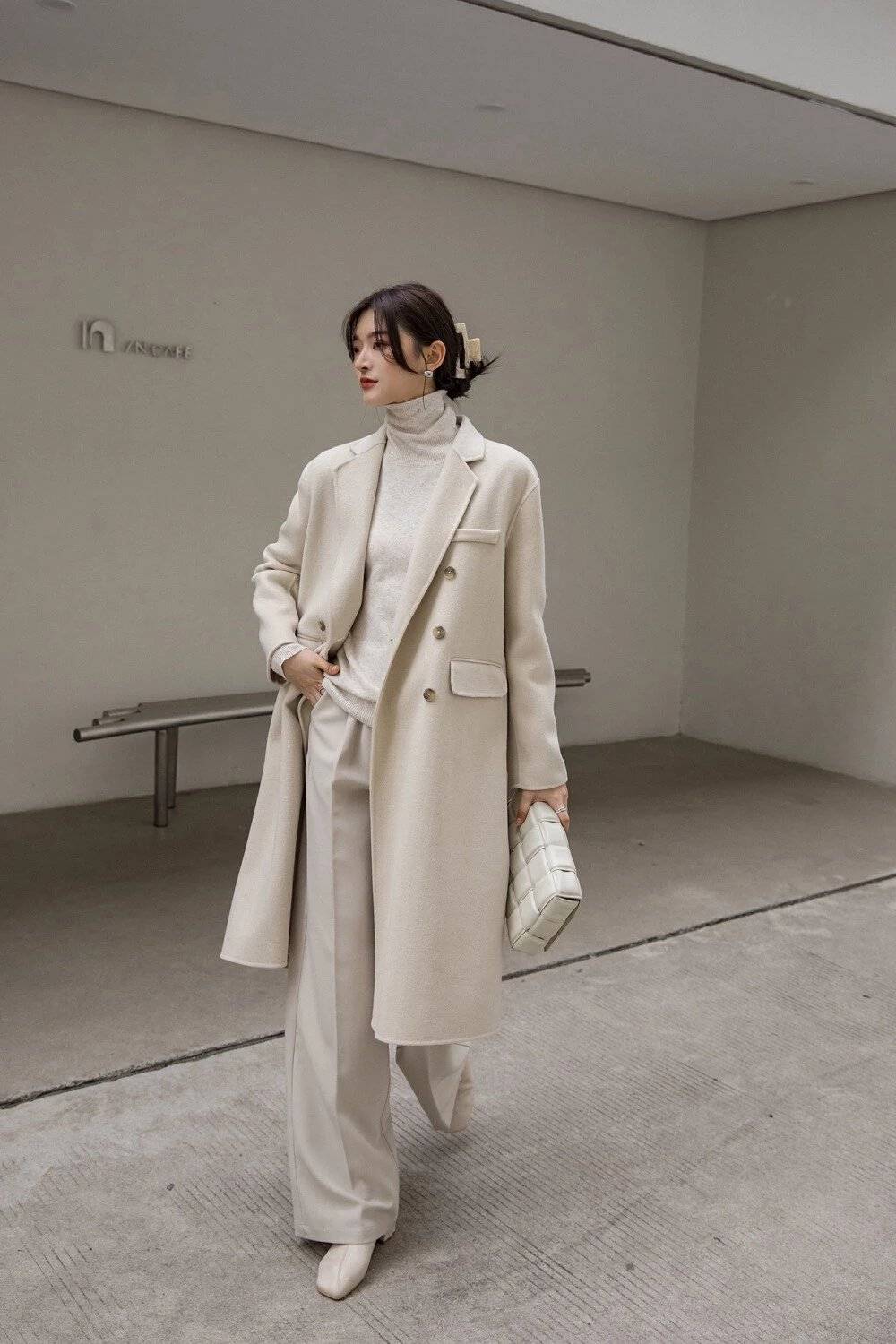 双面羊毛大衣女中长款秋冬季新款韩版宽松赫本风羊毛呢子外套