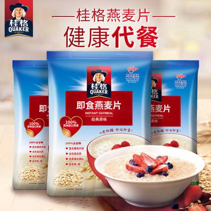 桂格即食燕麦片谷物冲饮原味1000g*3袋装免煮代餐营养早餐麦片