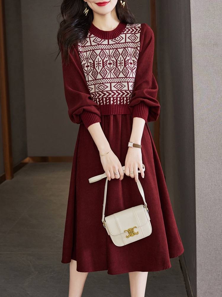秋冬小个子连衣裙女装秋装新款2022复古时尚洋气大码长袖针织长裙