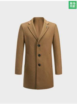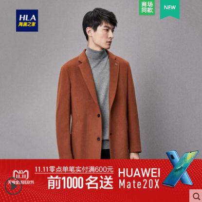 海澜之家单排扣西装领大衣2018秋季新品中长款双面呢大衣男