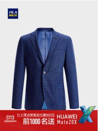 海澜之家时尚平驳领休闲西服2018秋季热卖花纹单排扣西服男士