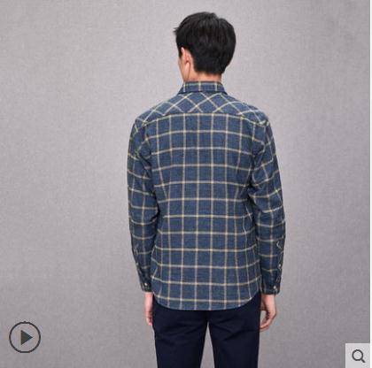 海澜之家格纹时尚休闲衬衫2018秋季新品舒适柔软长袖衬衫男