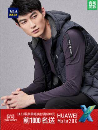 海澜之家连帽轻薄款羽绒背心2018秋季新品时尚舒适羽绒马甲男