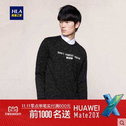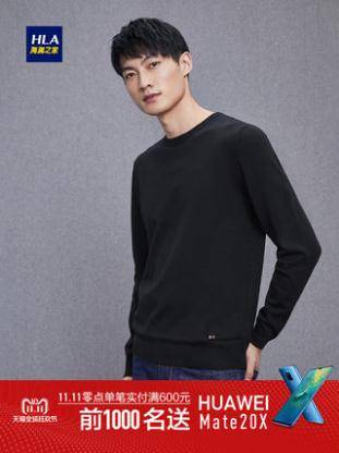 海澜之家纯色圆领长袖针织衫2018秋季热卖时尚修身舒适上衣男